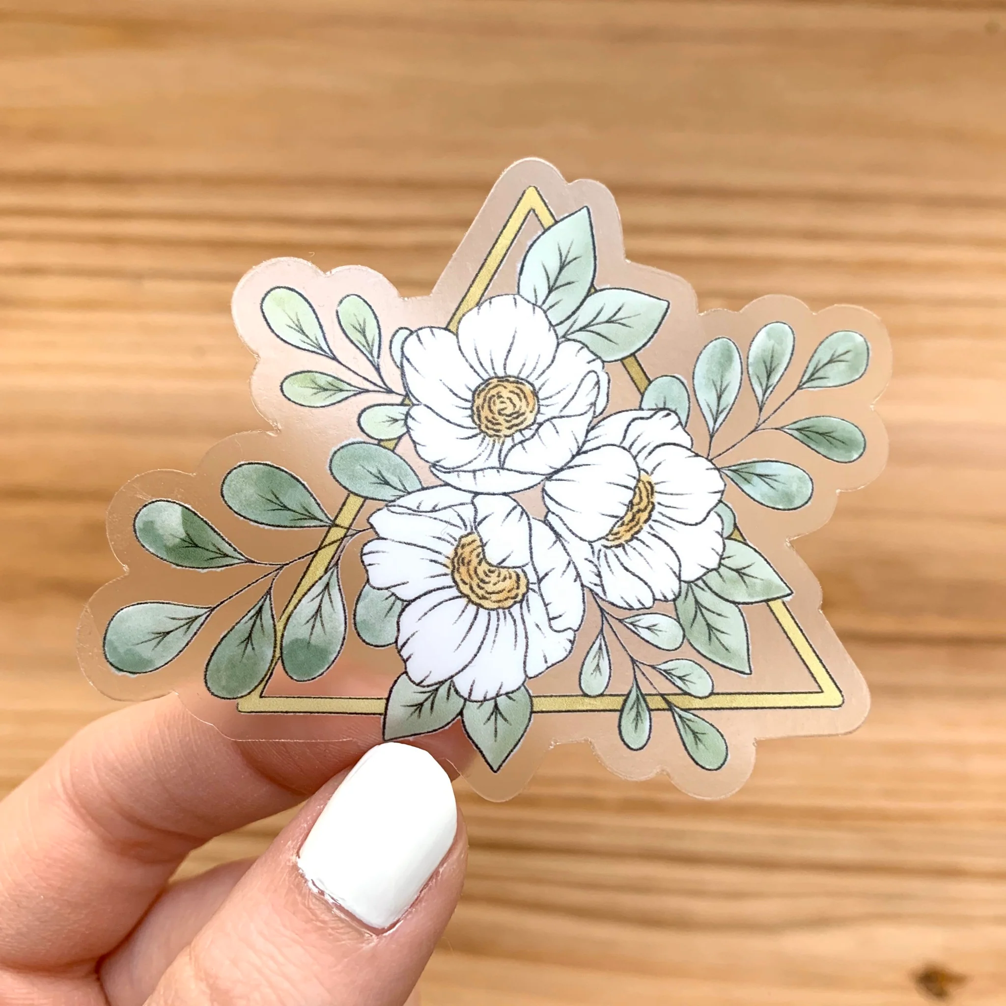 Clear Gold Triangle Floral Die Cut Sticker