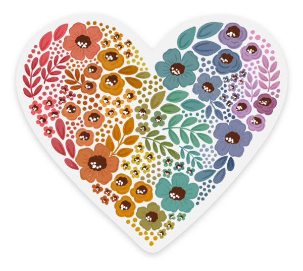 PRIDE RAINBOW FLORAL HEART VINYL STICKER (CLEAR)