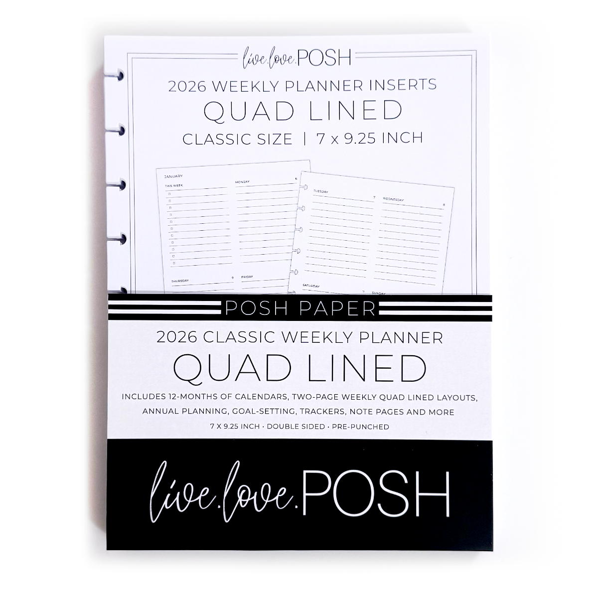 2026 CLASSIC QUAD LINED PLANNER INSERTS - 12 MONTHS