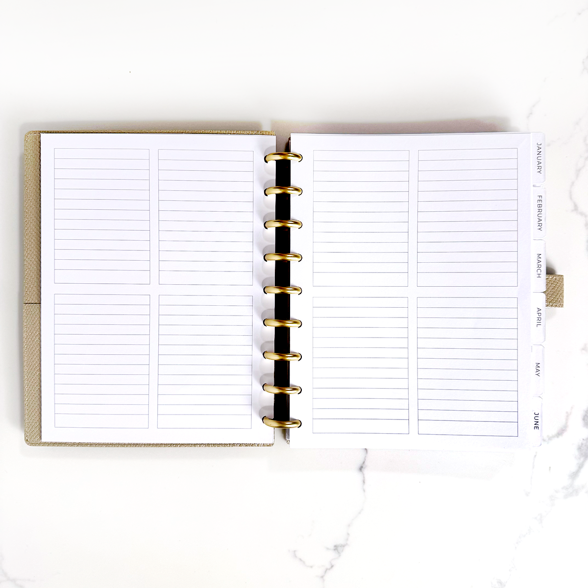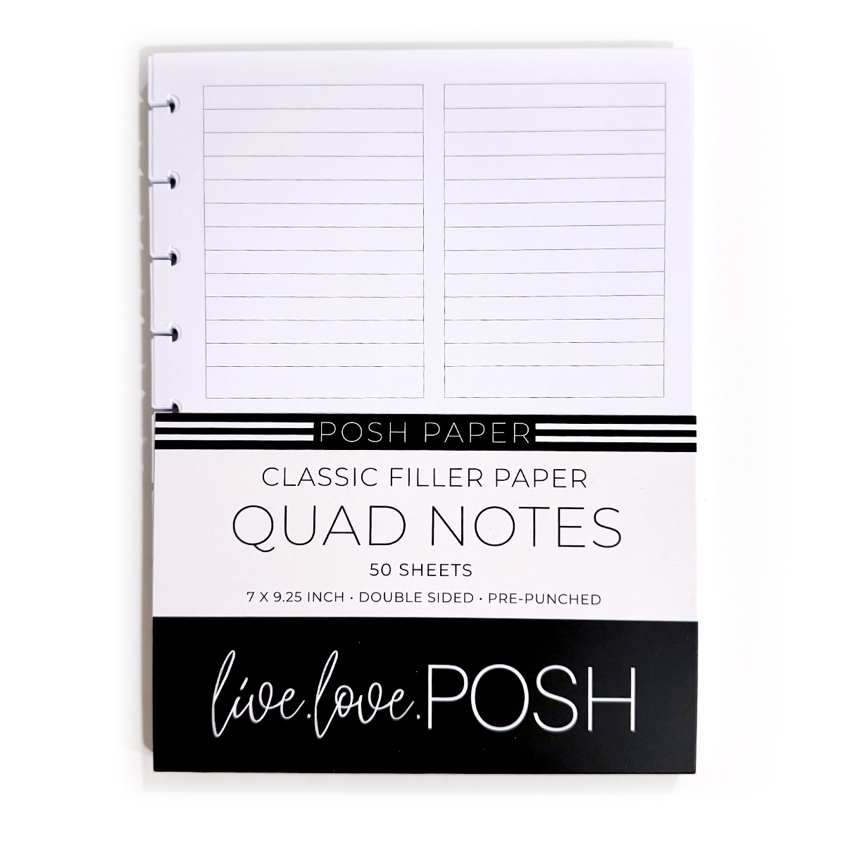 Keep your ideas organized with our Quad Notes Classic Filler Paper. Each page features four quad-lined boxes on both sides, giving you plenty of structured space for lists, notes, goals, and more. Perfect for planners who love a clean, grid-style layout. Easily snaps into any Classic-size disc-bound planner.
