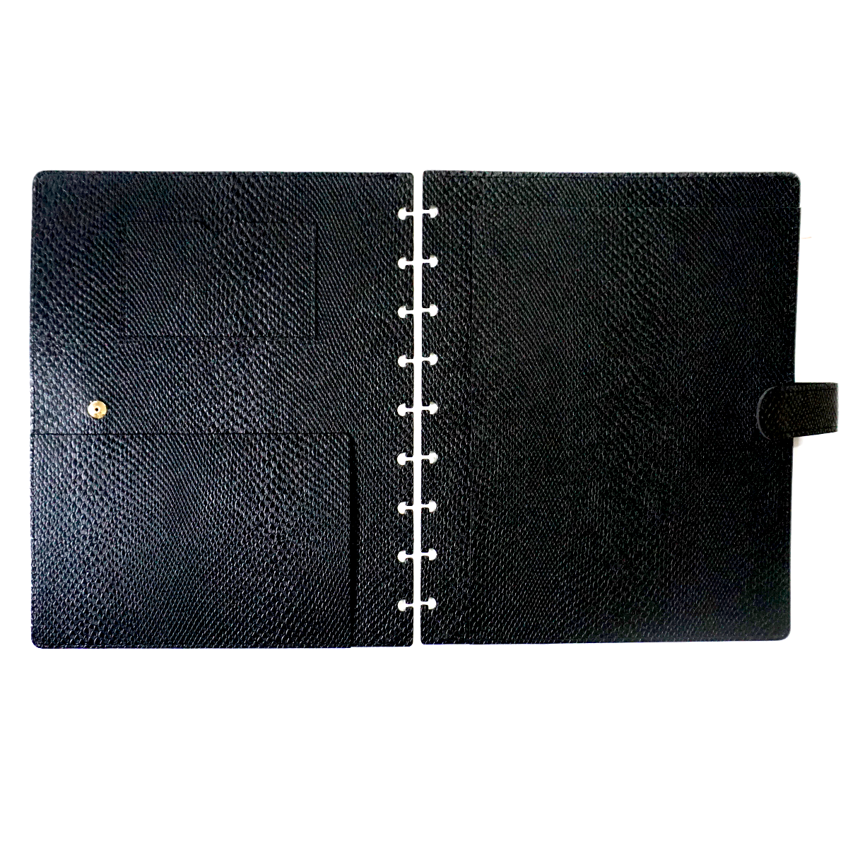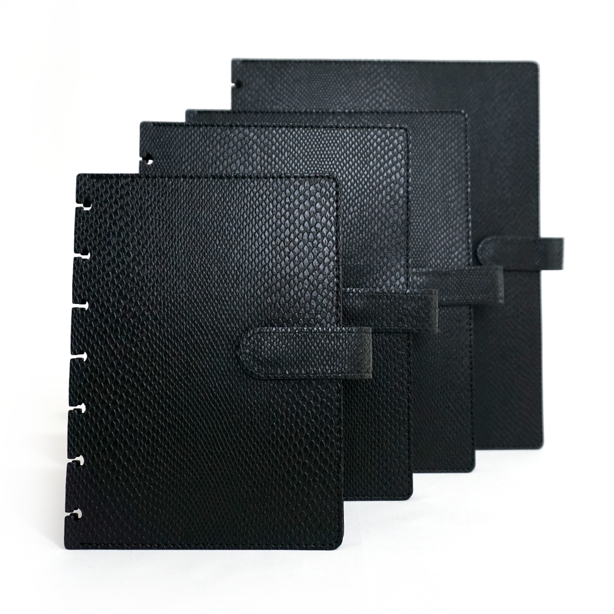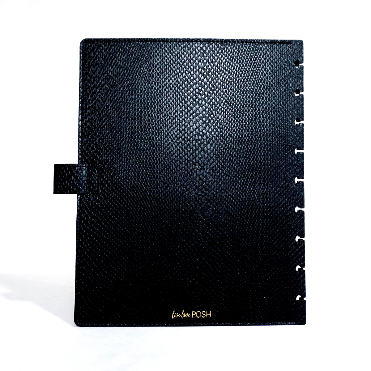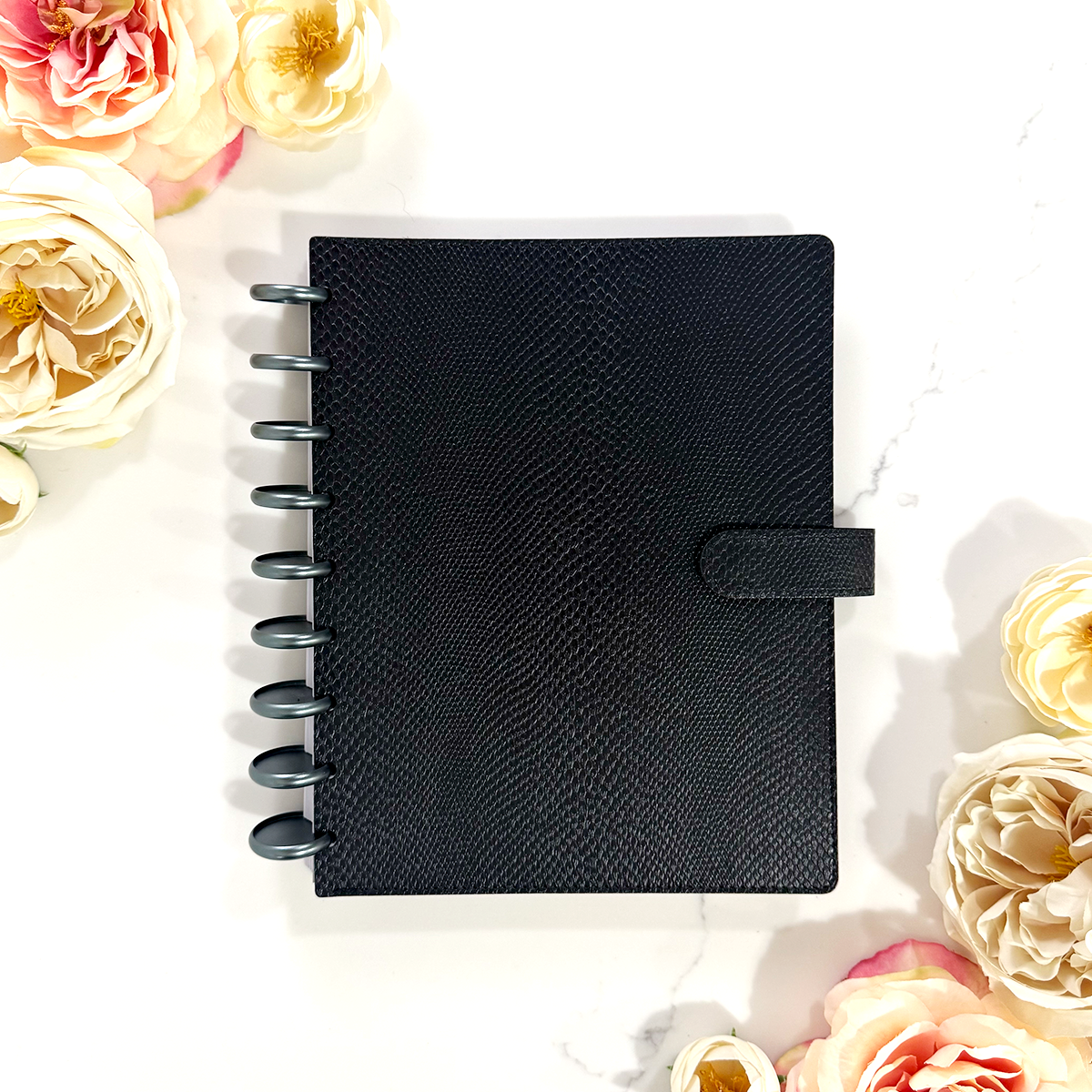 Redefine sophistication with our Chic Snap Cover Set in Metallic Black Python. Featuring a subtle shimmer and embossed texture, this sleek design adds a modern, luxurious edge to your planning setup.
