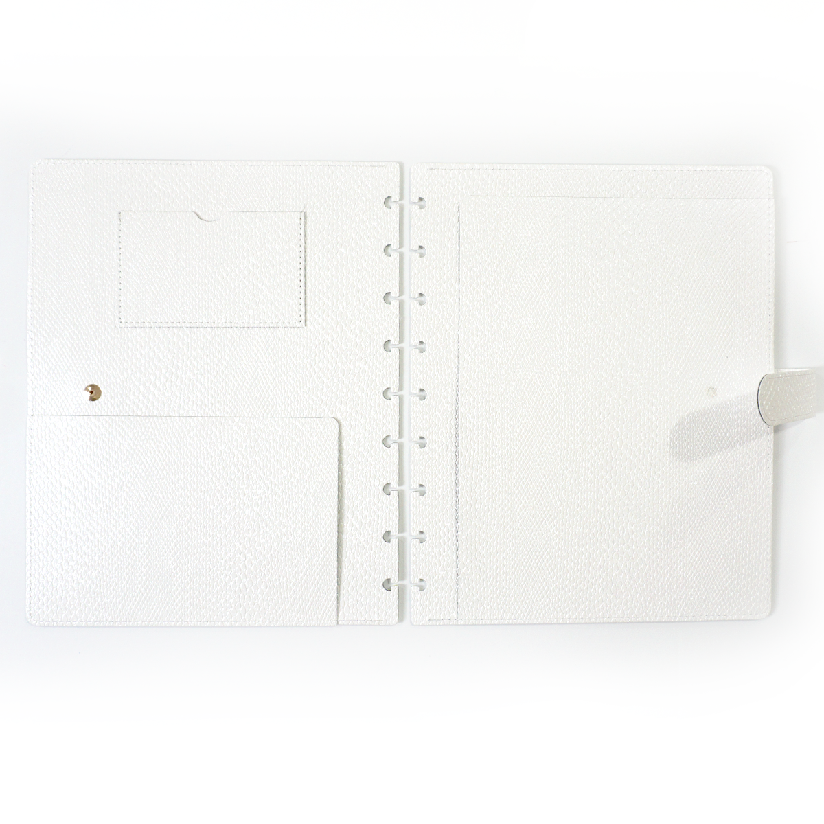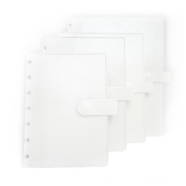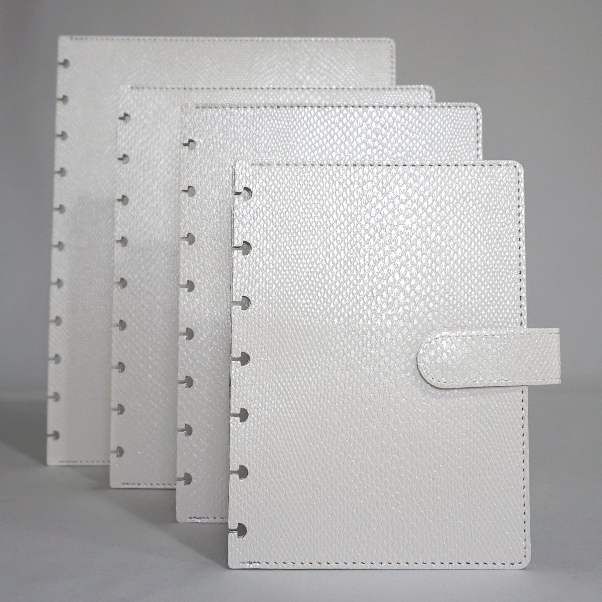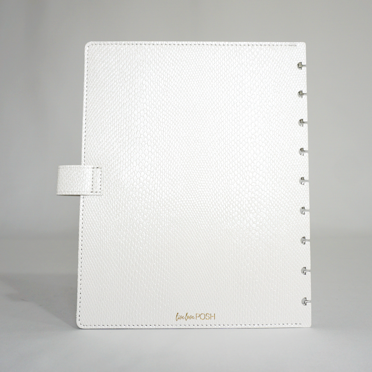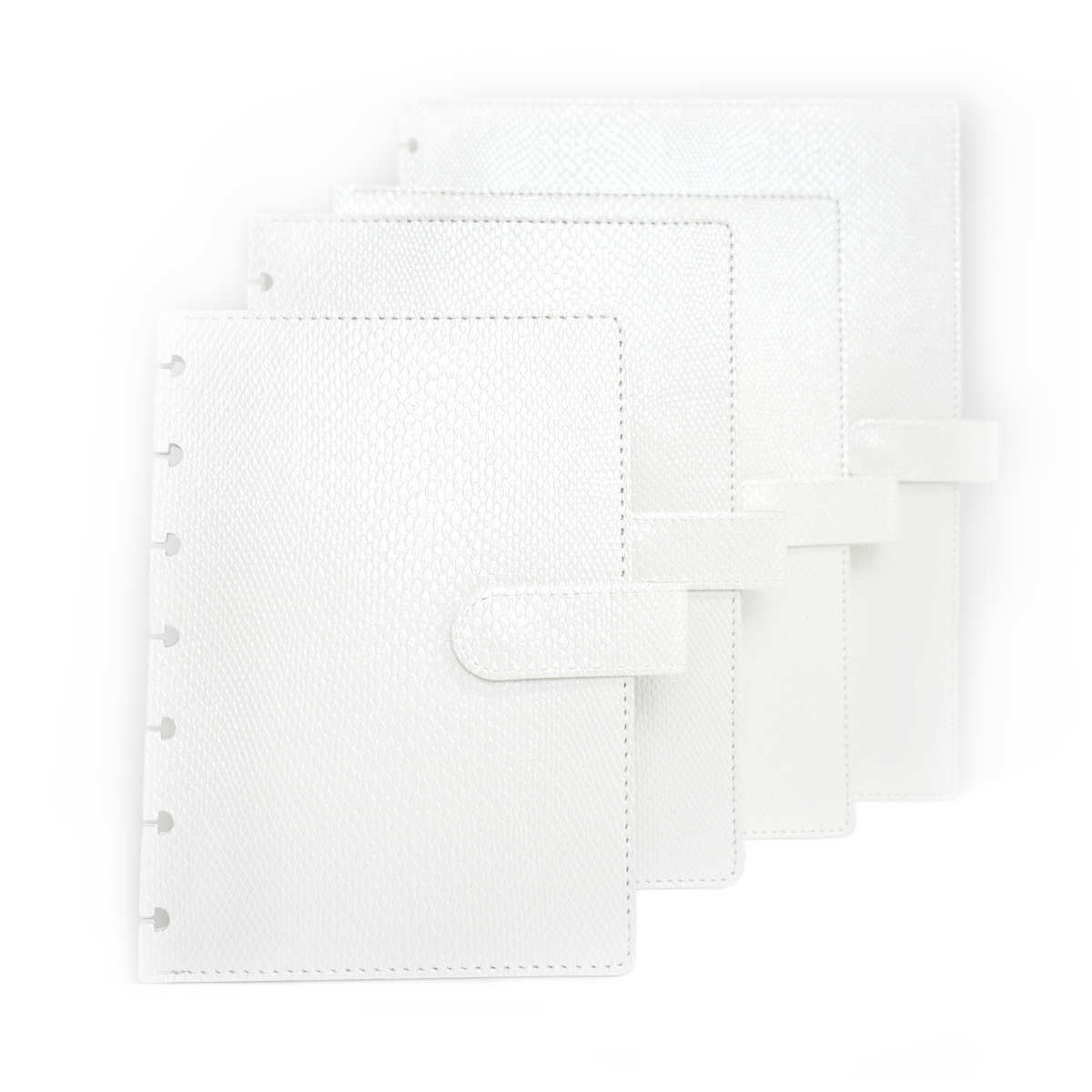 Add a touch of elegance and shine with our Chic Snap Cover Set in Metallic Pearl Python. This cover set offers a unique blend of texture and radiance. This luminous finish makes your planner feel as special as the plans inside.