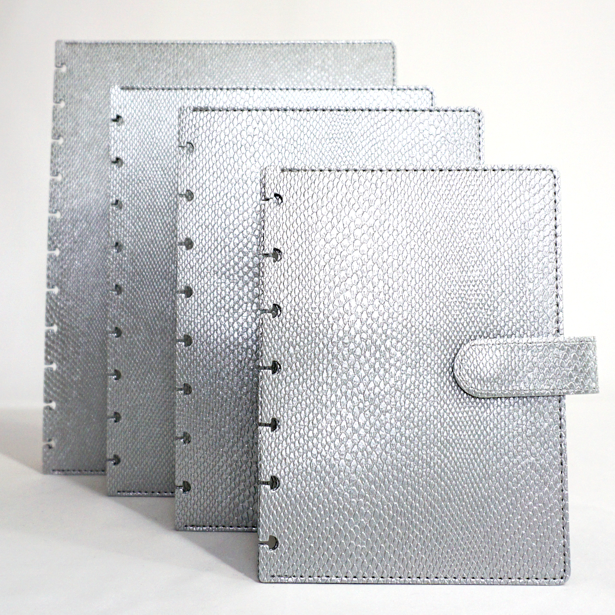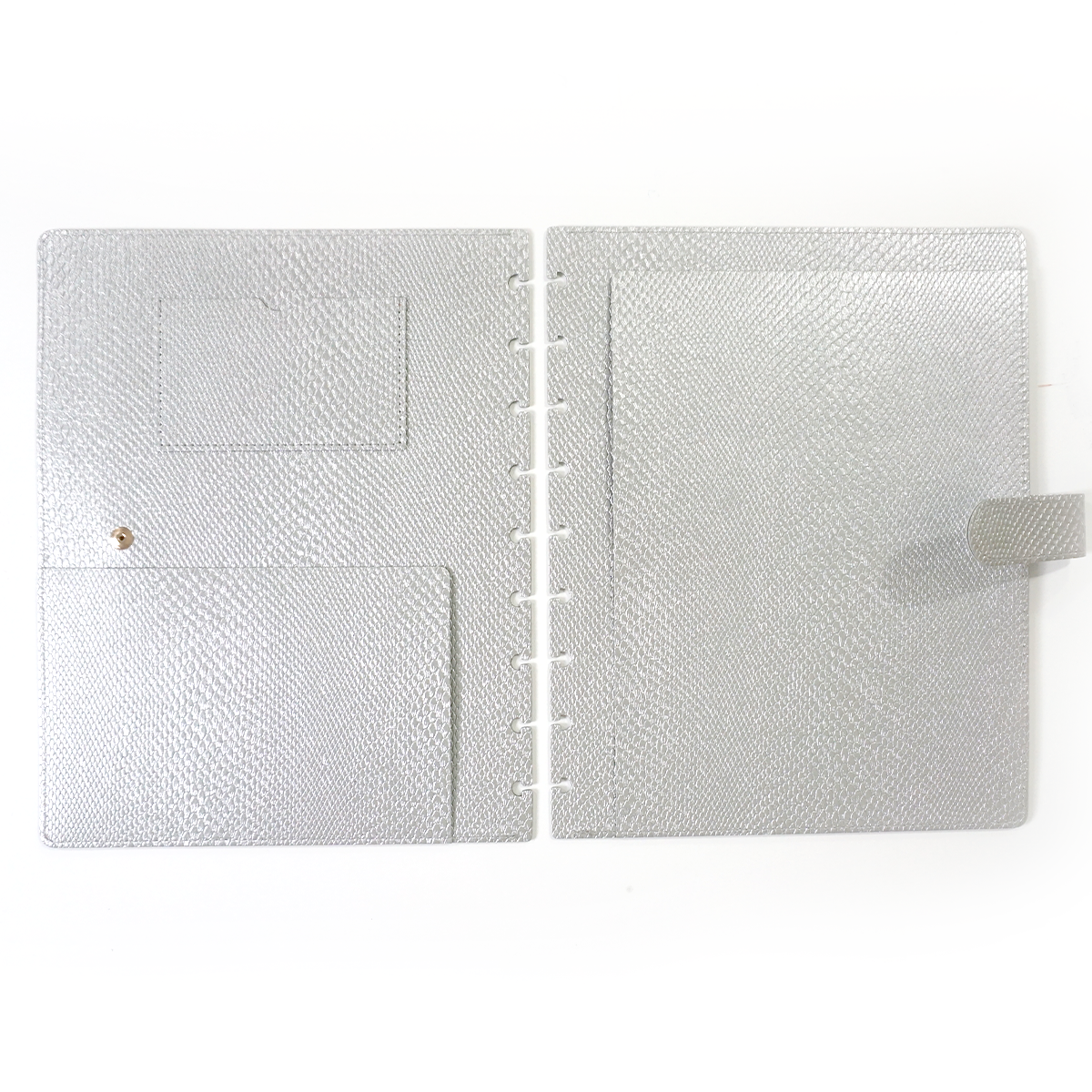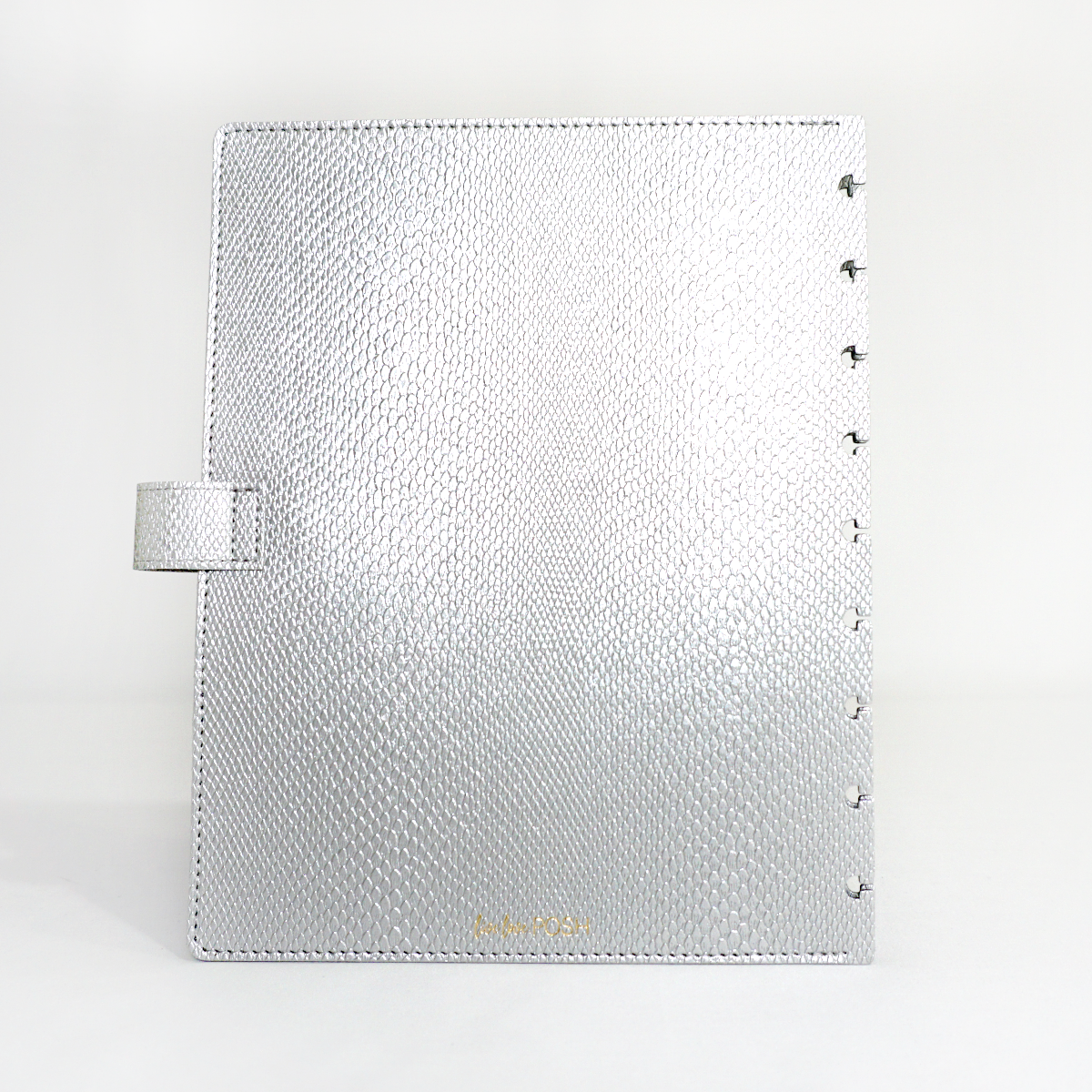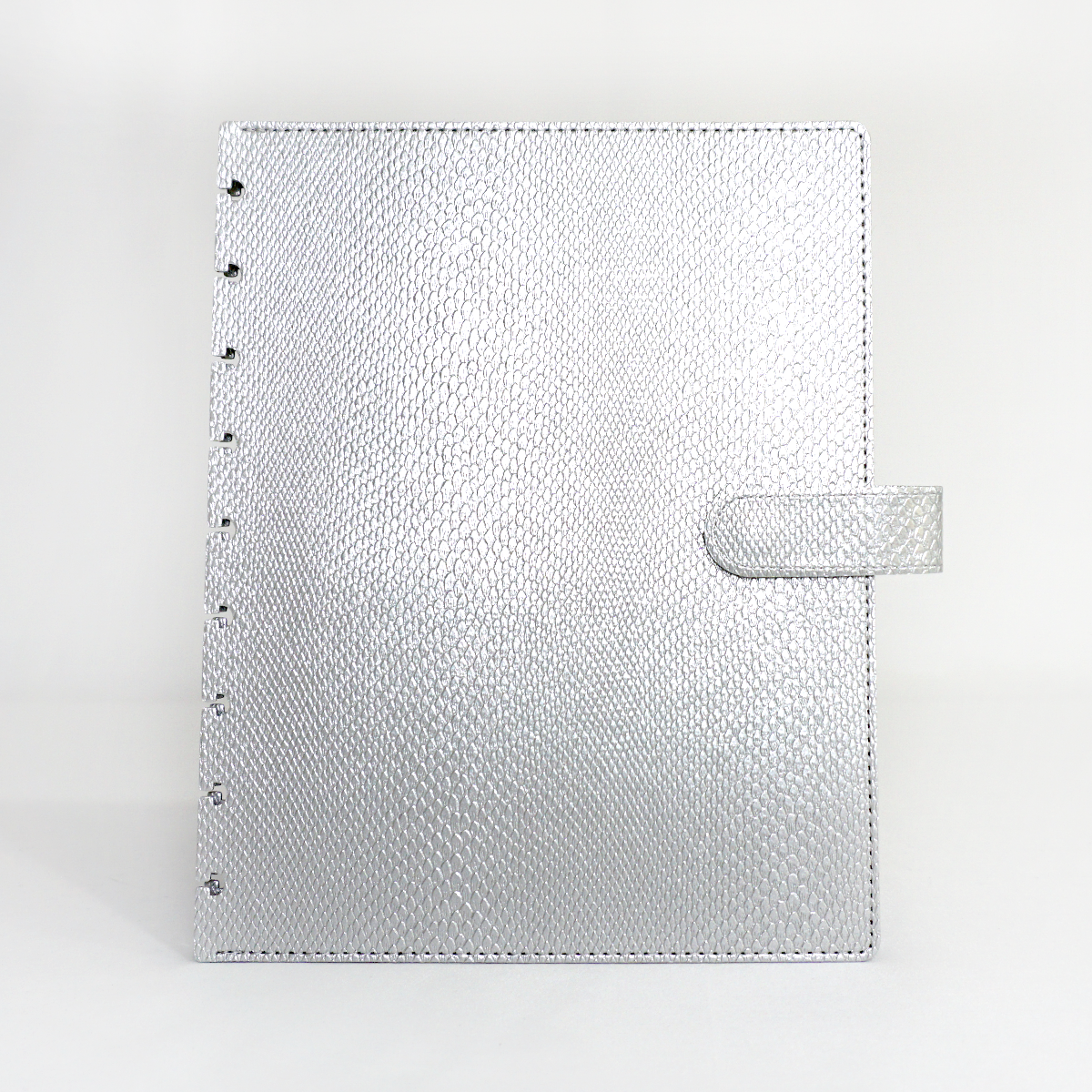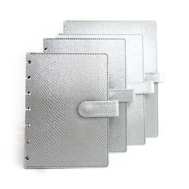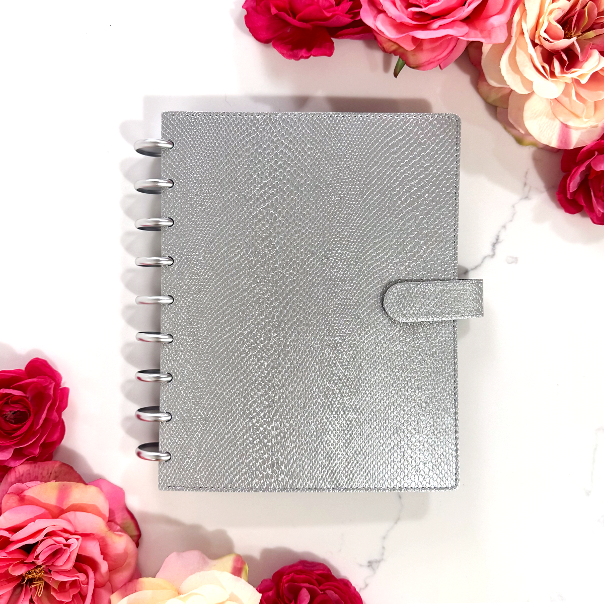 Designed to dazzle, our Chic Snap Cover Set in Metallic Silver Python brings a bold new energy to your planning lineup. The reflective finish and embossed texture offer a futuristic twist on a classic design, perfect for planners who love a standout look!