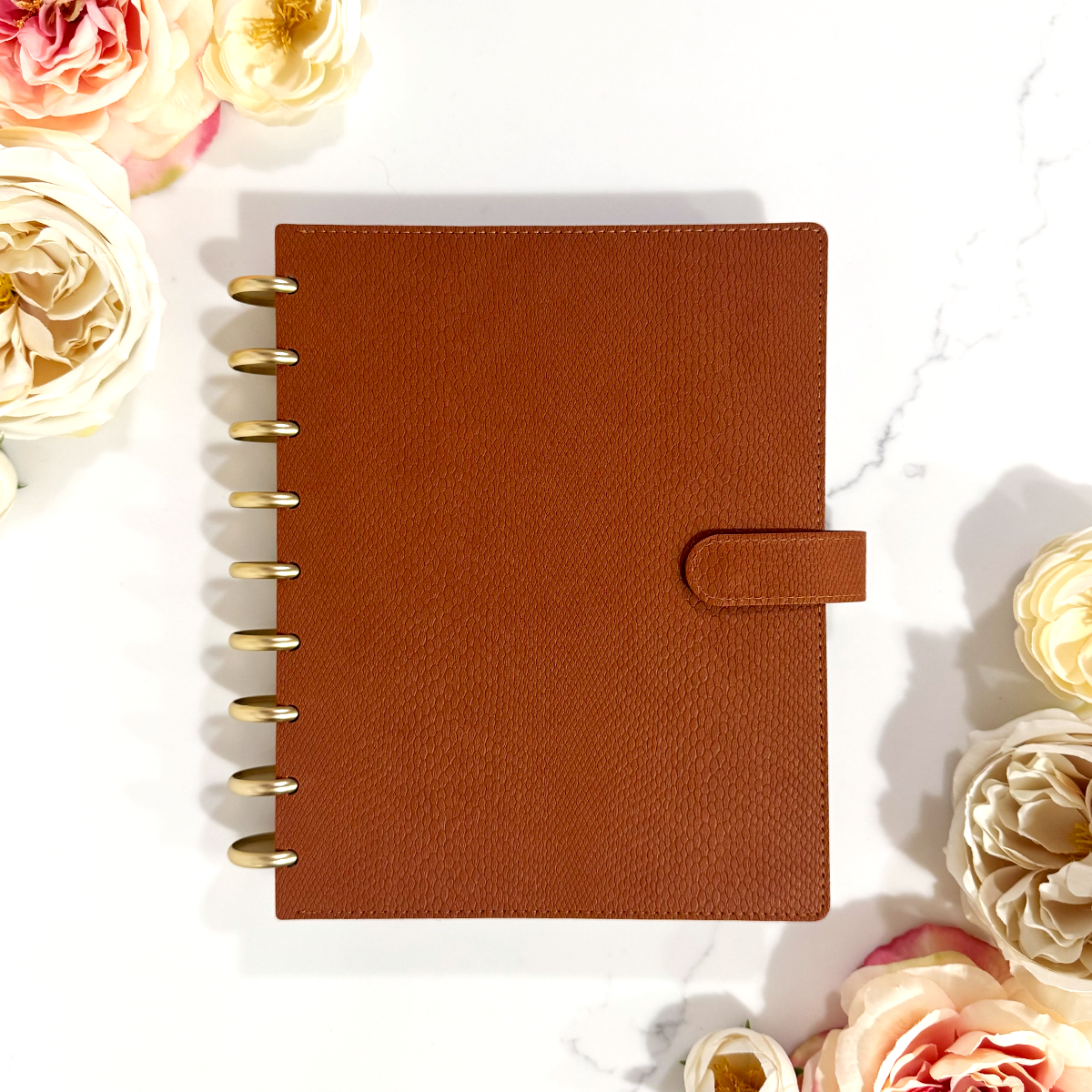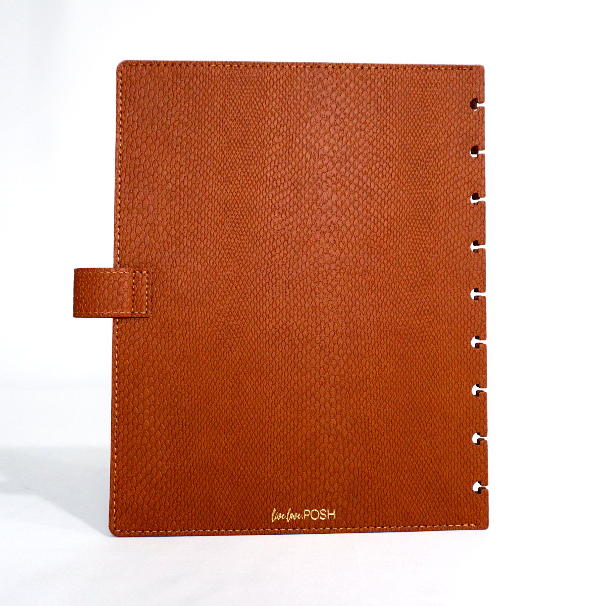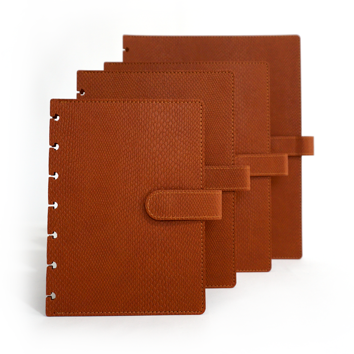 Inspired by classic leather tones our Chic Snap Cover Set in Saddle Brown Python offers a perfect blend of warmth and sophistication. This warm, classic hue brings understated elegance to your planner.