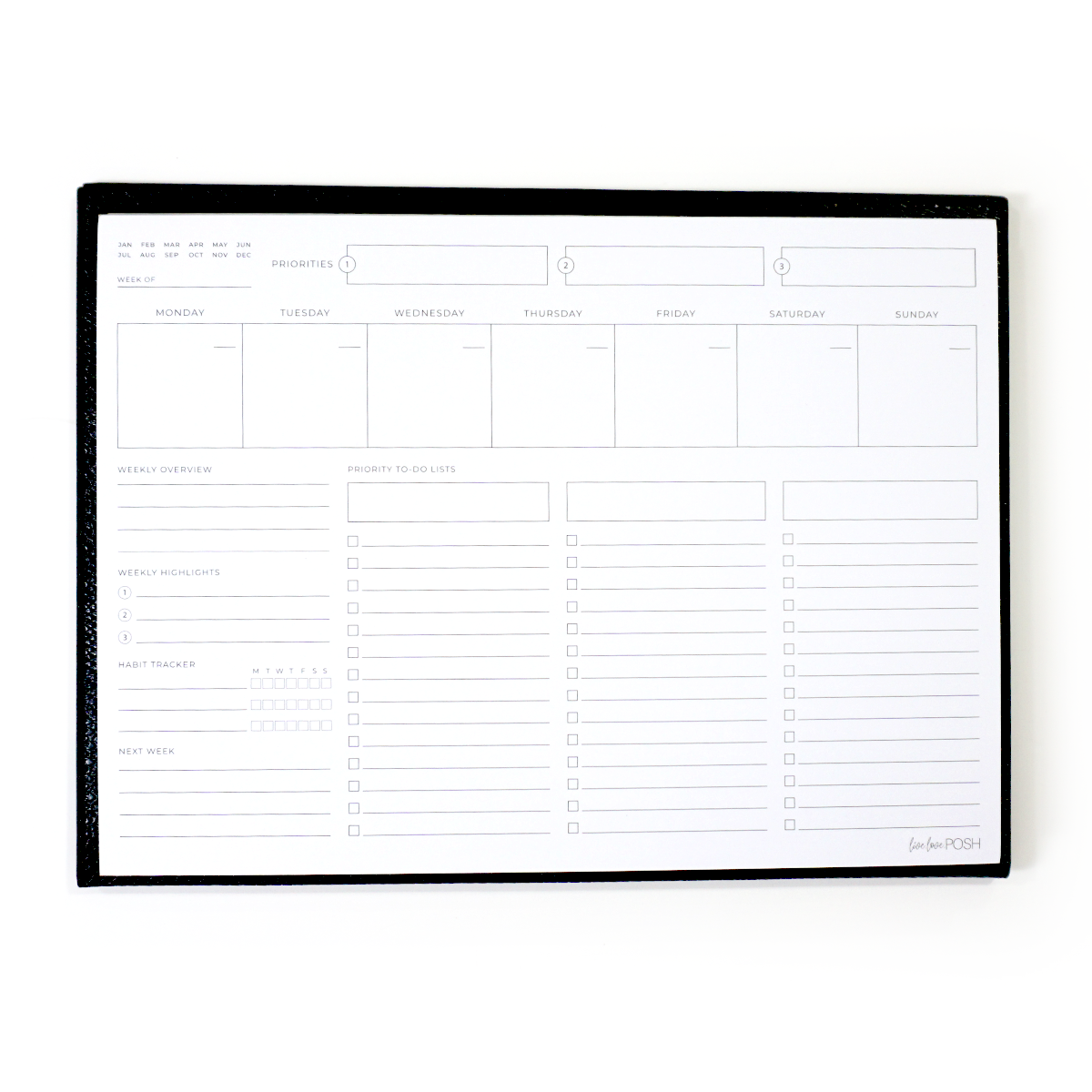 - Gold Stamped "Live Love Posh" logo on the inside cover