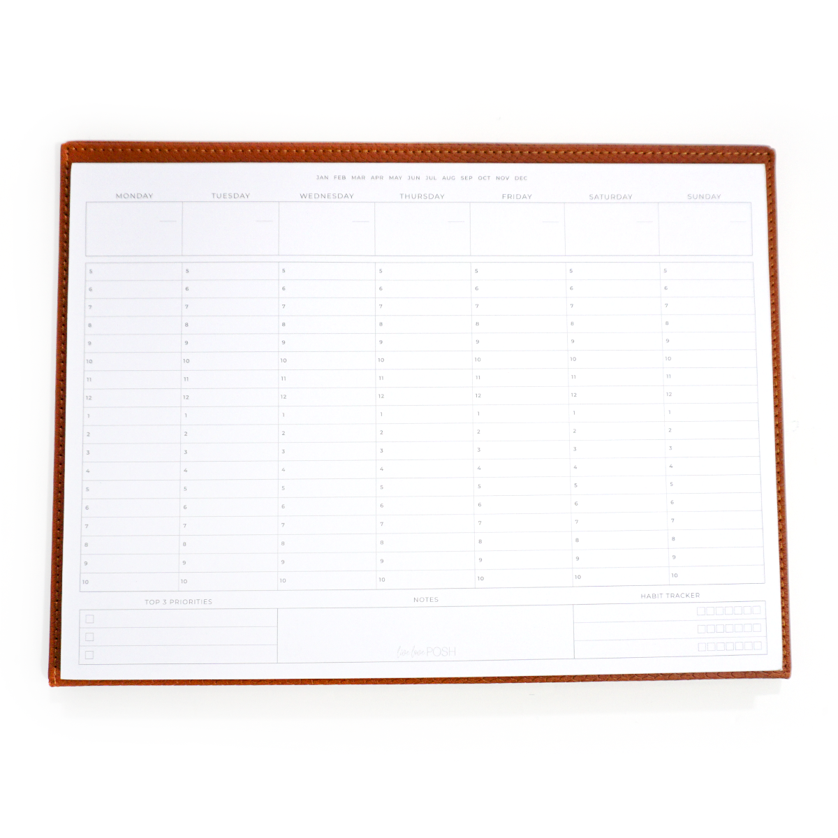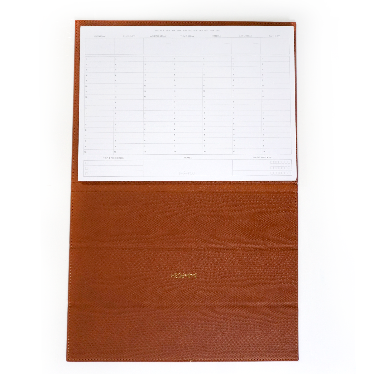 - Gold Stamped "Live Love Posh" logo on the inside cover