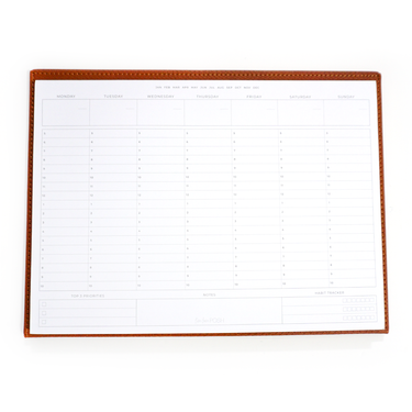 Plan every hour of your day with our Large Standing Planfolio in Saddle Brown Python. Crafted from premium vegan leather, this sophisticated folio pairs elegance with durability. This weekly layout includes an hourly schedule, daily planning boxes, and top three priorities checklist, to ensure seamless organization throughout your week. Designed to stand upright for easy viewing, making a chic addition to any workspace.