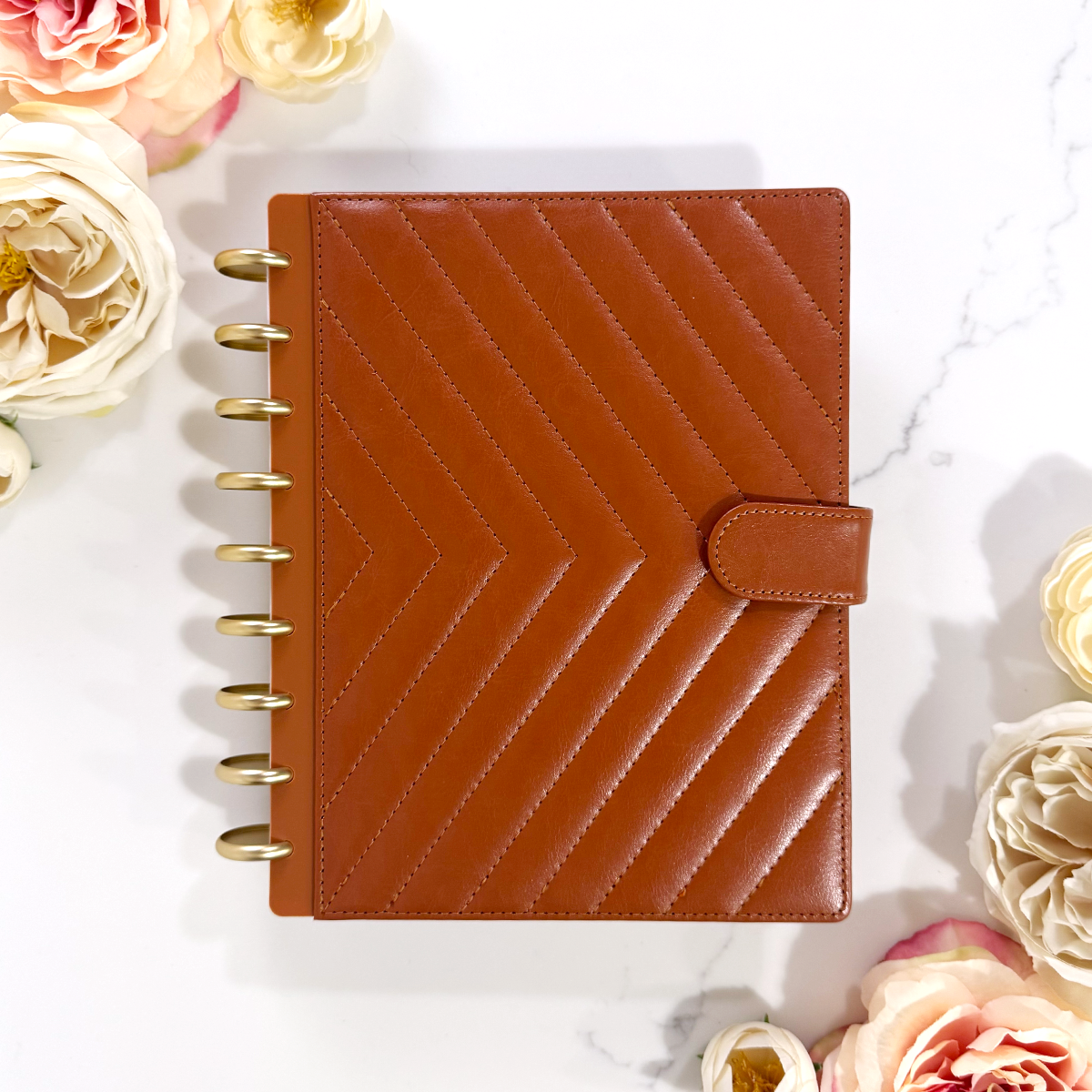 Inspired by classic leather tones, our Luxe Quilted Classic Planner Cover Set in Saddle Brown offers a rich, refined color with a modern, polished finish. Ideal for those who appreciate understated, lasting style.