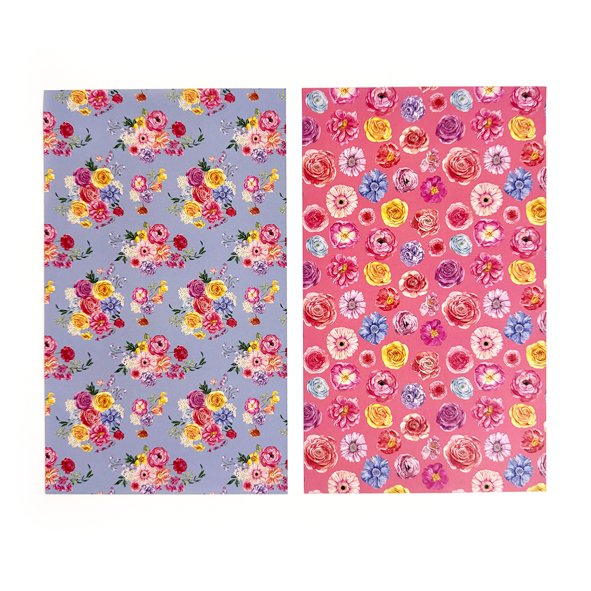 - Covers made of high quality cardstock with decorative florals printed on the back side to be used as scrapbook paper