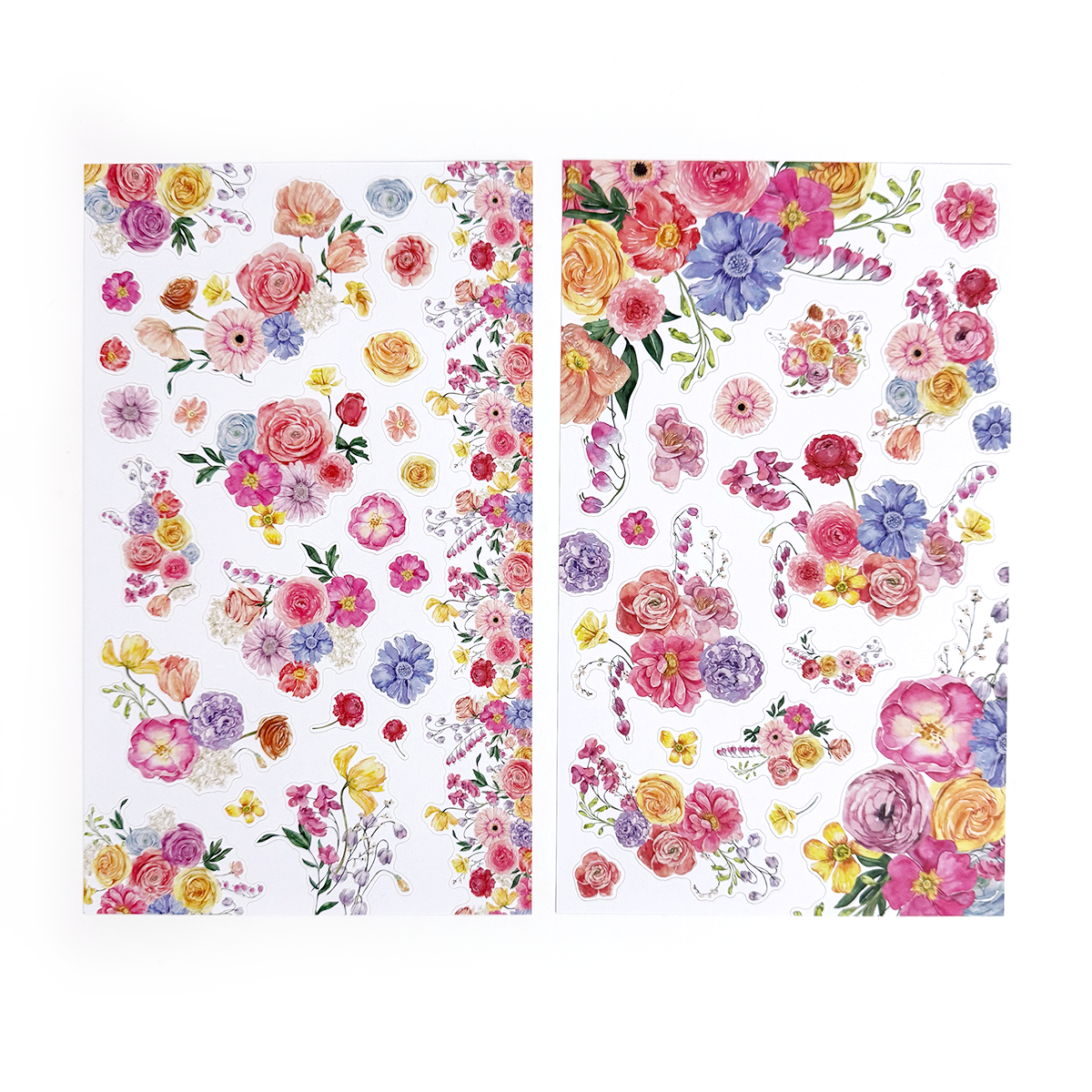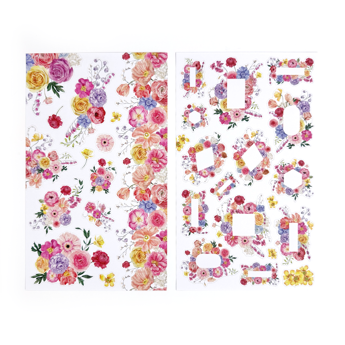 Add a burst of color and creativity to your planners and journals with our Vibrant Flourish Sticker Journaling Pack! This sticker pack features 10 laser-cut sticker sheets, along with beautifully designed floral covers that double as scrapbook paper, perfect for decorative journaling. From florals to functional boxes, this sticker pack has everything you need to create charming pages in your planners, notebooks, or journals.