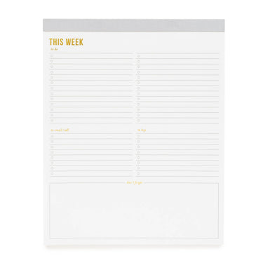 The Large Grey Weekly Checklist Pad is designed to keep your weekly to-dos on track and clearly organized in front of you to tackle one at a time.