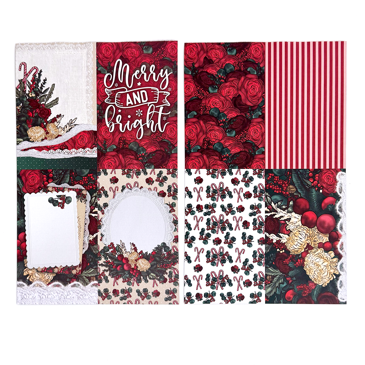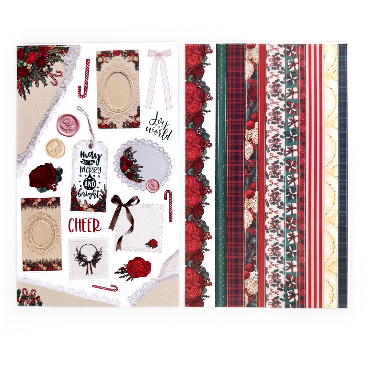 - Featuring rich hues of red and green florals, classic holiday icons, delicate lace accents, vintage-inspired gift tags, colorful letters and numbers, Christmas washi strips, and beautiful Christmas themed scrapbook paper pages.