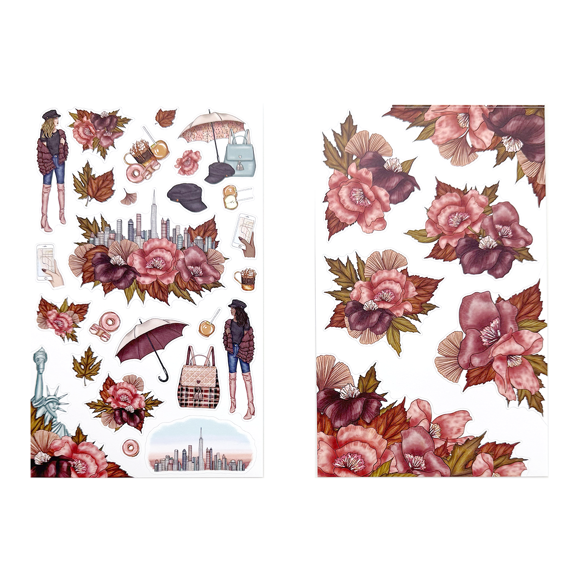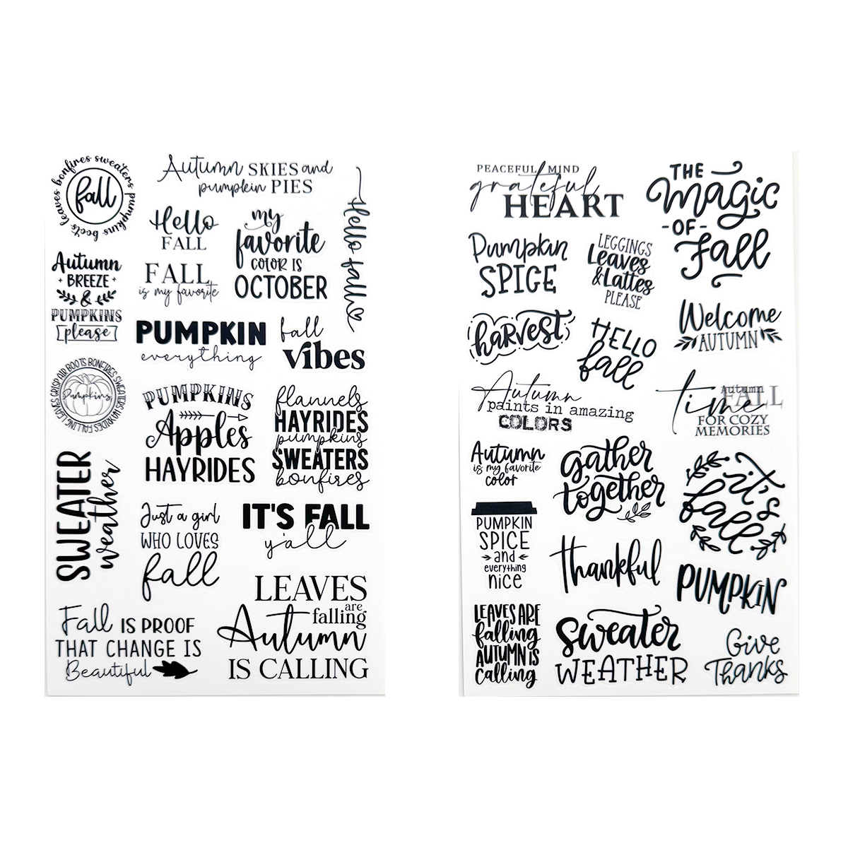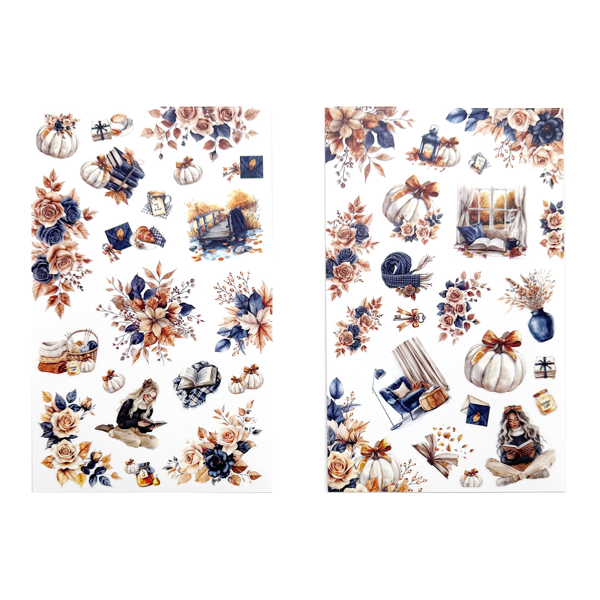 - Fall themed stickers feature deco, florals, quotes, and coordinating functional boxes.