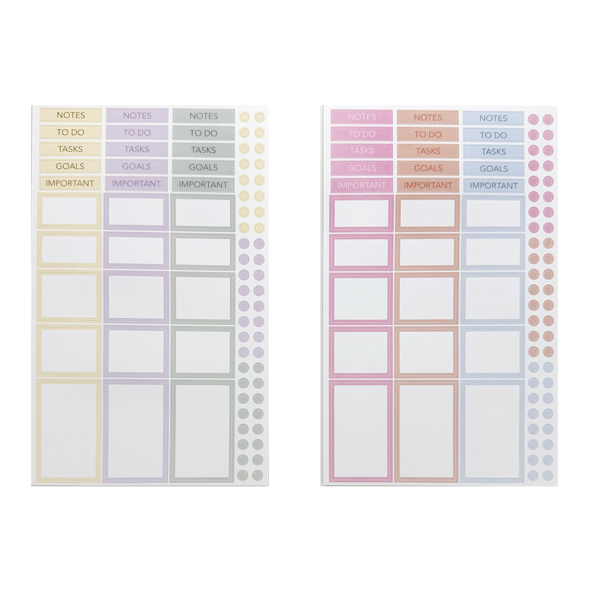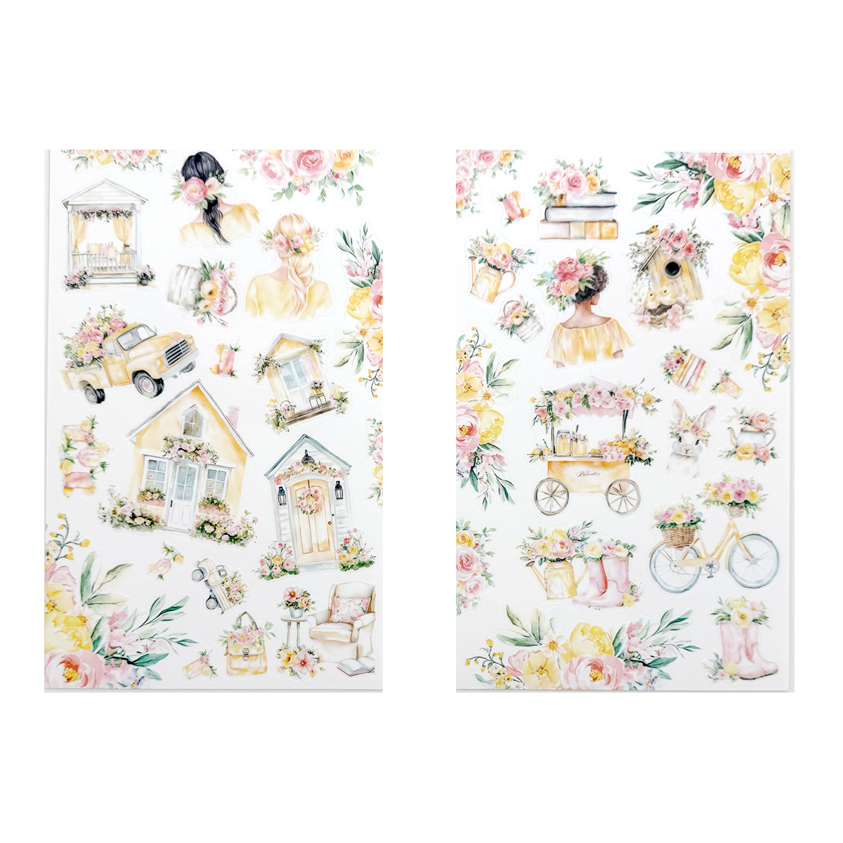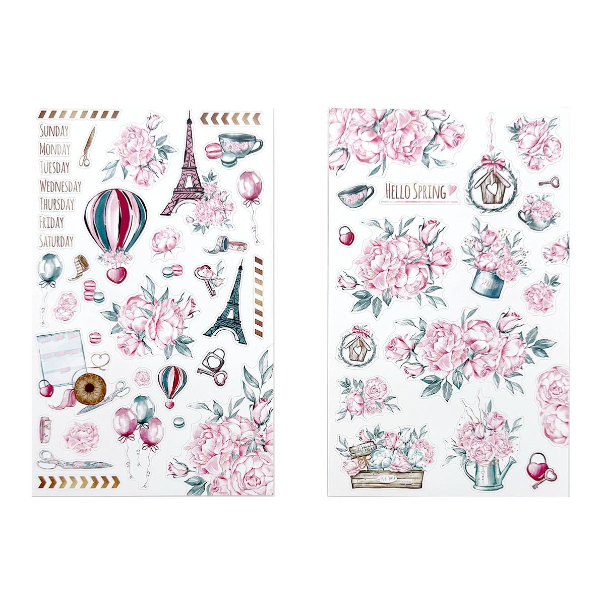 - Spring themed stickers feature deco, florals, quotes, and coordinating functional boxes.
