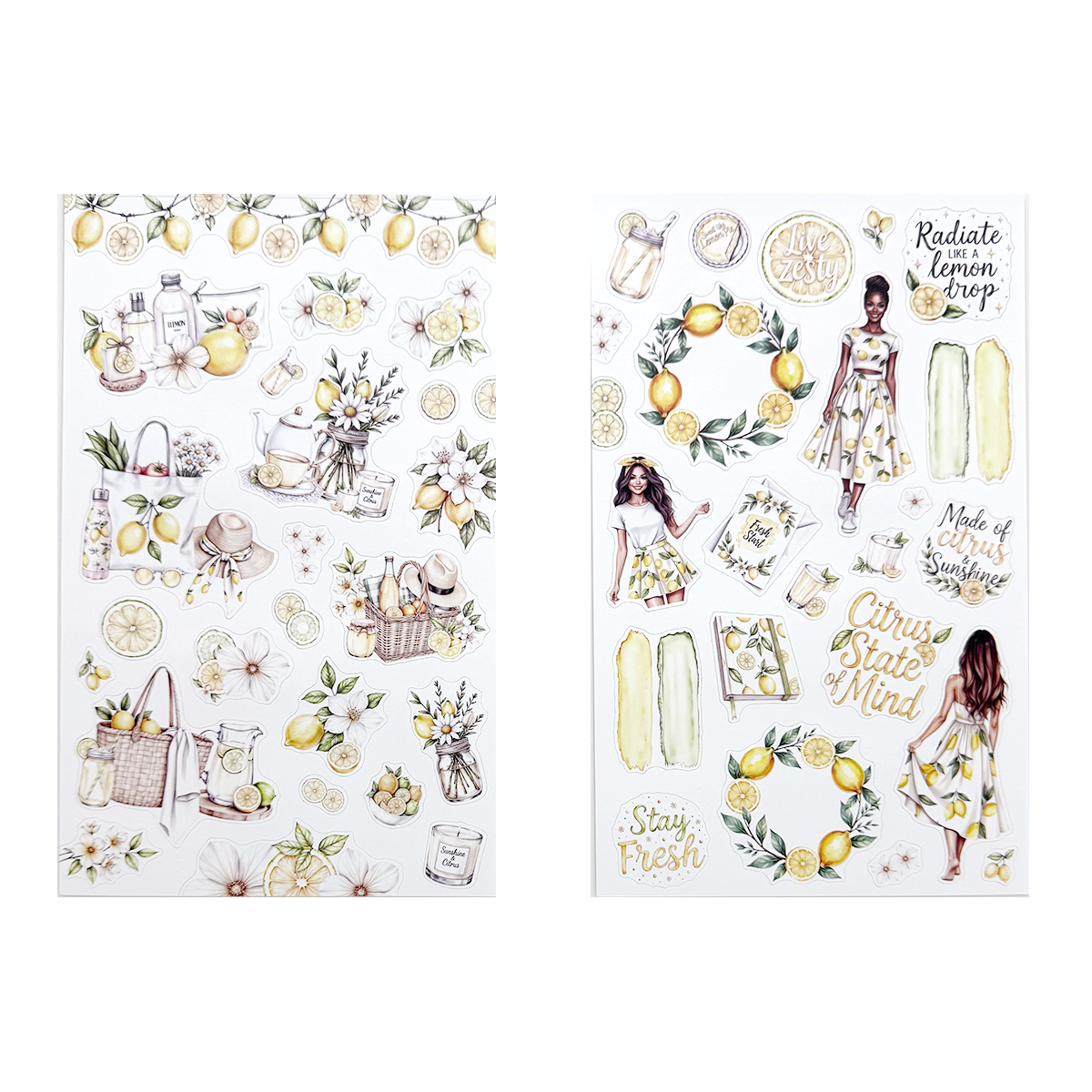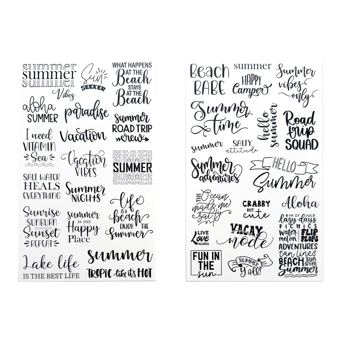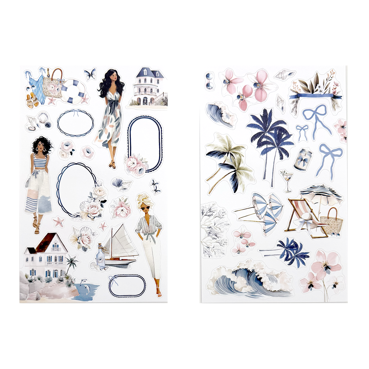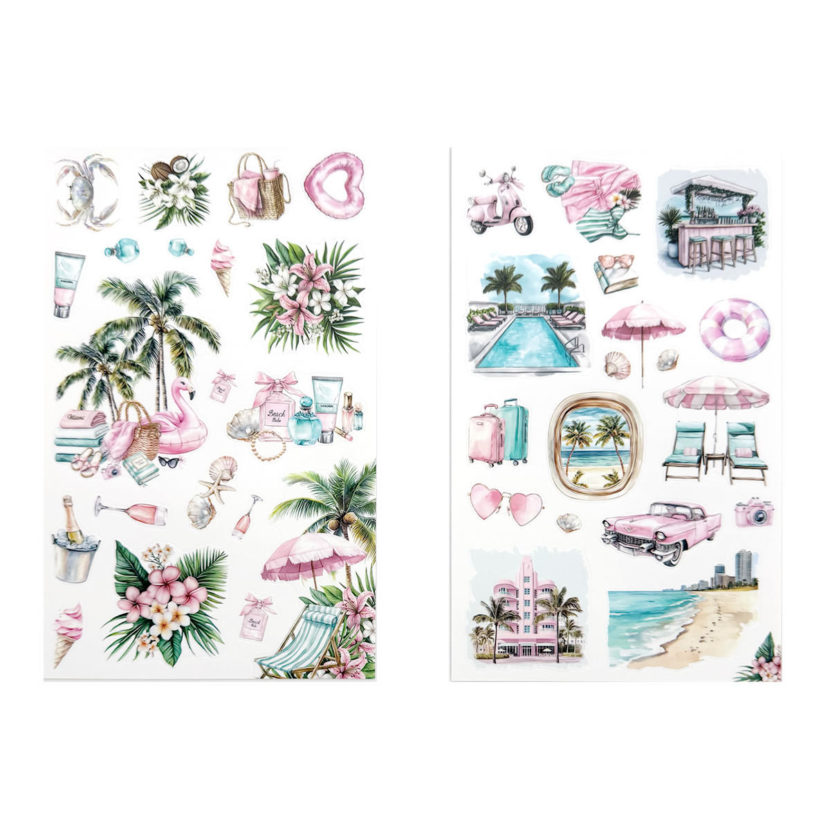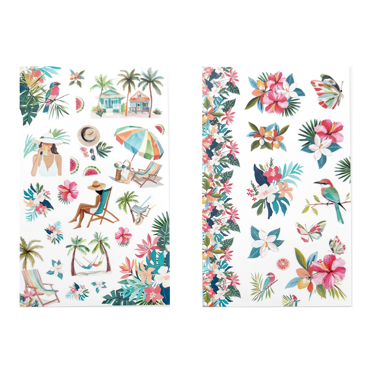 - Summer themed stickers feature deco, florals, quotes, and coordinating functional boxes.