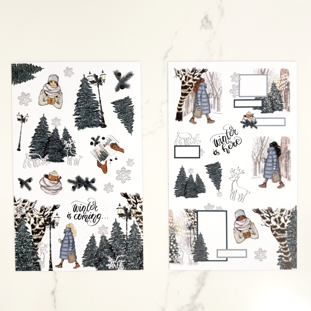 - Featuring Winter-themed scenes, deco, florals, clusters, and quotes
